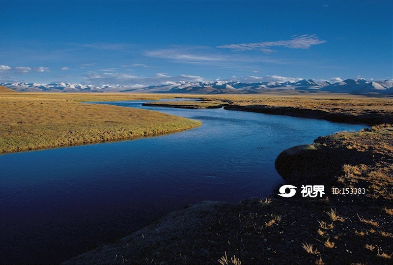 雅鲁藏布江源头;远处是冈底斯山脉