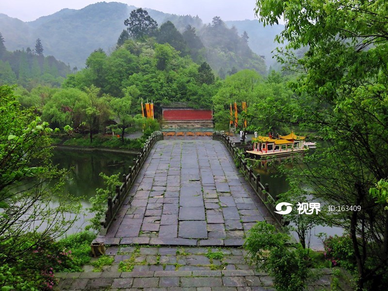 武当山,道教圣地,位于湖北省十堰市境内。武当山古有“玄岳”、“太岳”、“大岳”之称。武当山是道教名山和武当武术的发源地,被称为“亘古无双胜境,天下第一仙山”。逍遥谷是武当山一处集山水人文为一体的生态旅游区。景区入口有座古桥横跨于九渡涧之上,取名天津桥,天津者,为得道升天的渡口。桥东修龙泉观,桥西建大影壁,通过这座桥,可由世俗进入仙境,濯尽心中混沌烦躁。故而千百年来,这是武当山古神道上的重要通道。相