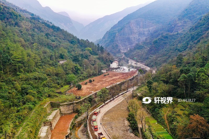 2019年12月9日,在四川省华蓥市双河办事处老拱桥航拍的正在实施生态修复的高顶山矿区一角。