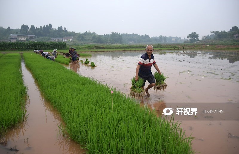 2021年5月21日,正是农历节气小满。在内江市东兴区石子镇龙安村的宏展粮油专业合作社种植基地,社员们正在水田中劳作。