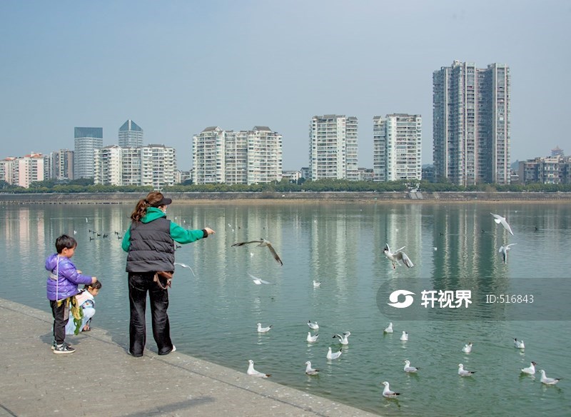2022年2月27日,气爽风轻,四川省绵阳市三江半岛湿地公园红嘴鸥飞舞,吸引众多市民及游客前来欣赏投食喂鸥,人鸥同乐,其乐融融。