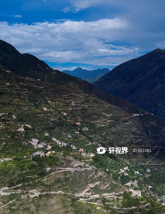 2024年7月6日,四川省阿坝州小金县宅垄镇宅垄沟,中国熊猫大道小金-丹巴段,蓝天、白云、藏寨与小金河相映成趣,风景如画。