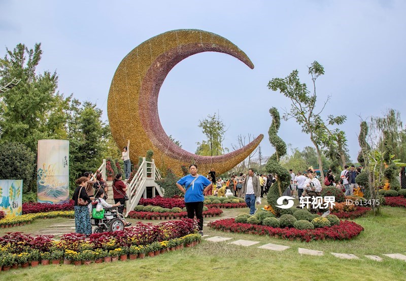 2024年10月2日,成都市温江区天乡路三段的七彩海巢狂欢动物城,正值成都温江菊花展会开幕第二天,人流如织,热闹非凡,吸引大量游客观光赏花。