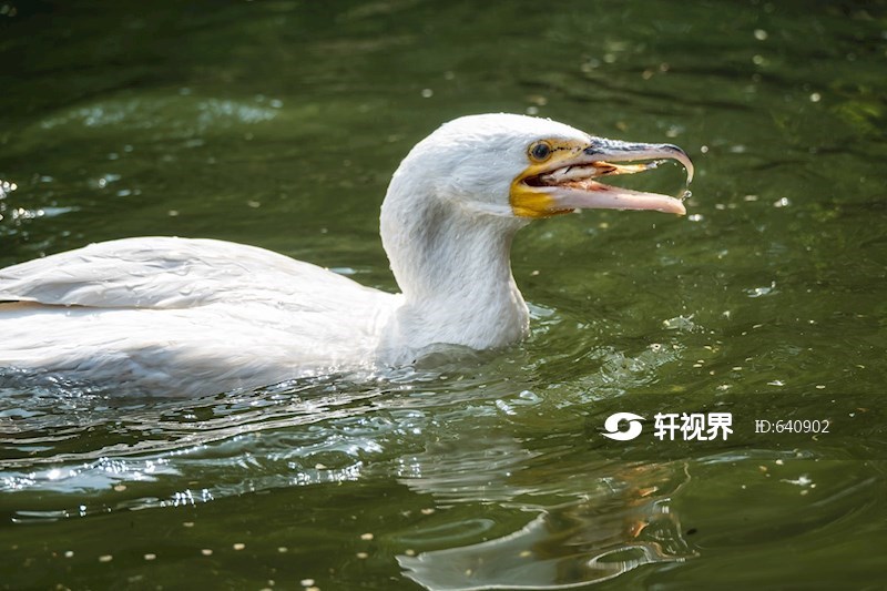 2025年5月16日,吉林省吉林市龙潭区江密峰镇,小川村池塘现稀有的白色鸬鹚,在池塘中觅食栖息 。