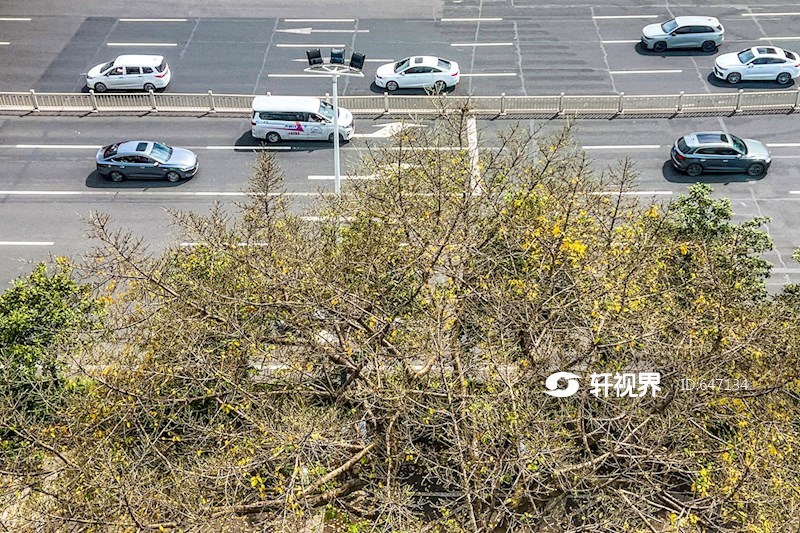 2025年4月27日,龙马潭区蜀泸大道旁,一棵黄葛树迎来春季换叶,黄叶脱落,剩下树枝。