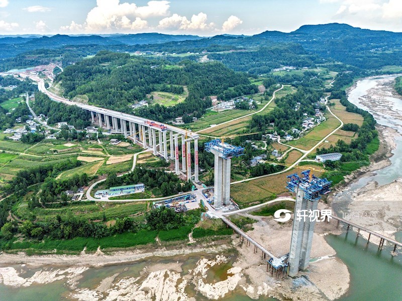 2025年7月29日,四川省巴中市通江县,镇广高速东山通江河特大桥建设正酣(无人机照片)。