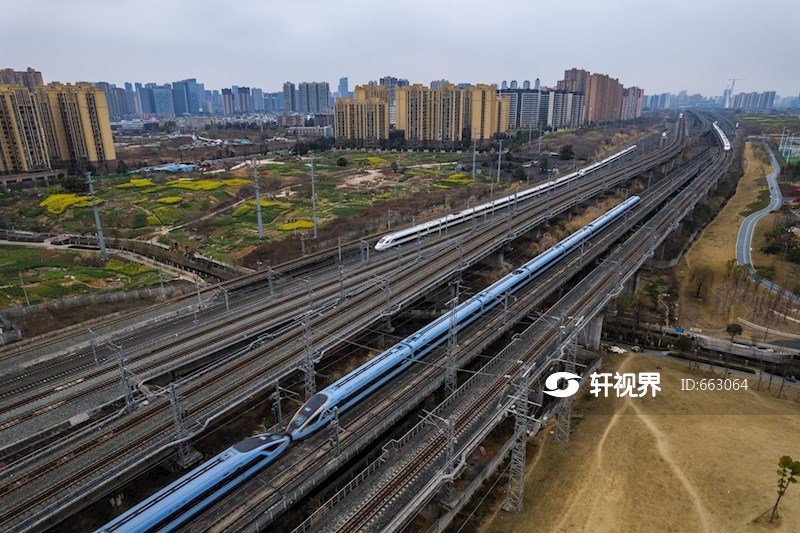 成都市作为中国西南地区的交通枢纽,其密集行驶的高铁列车展现了现代交通的高效与便捷。从高空俯瞰,一条条银白色的高铁轨道纵横交错,宛如城市的血脉,将繁华的都市与周边区域紧密相连。列车以流线型的车身飞速穿梭,仿佛一支支离弦之箭,在阳光下熠熠生辉。成都东站、成都南站等主要站点犹如巨大的齿轮,有条不紊地调度着繁忙的运输网络。高铁不仅提升了人们的出行效率,也推动了区域经济一体化发展。这一壮观景象体现了科技与城市建设的完美结合,展示了成都这座千年古都迈向国际化大都市的蓬勃活力和时代风貌。