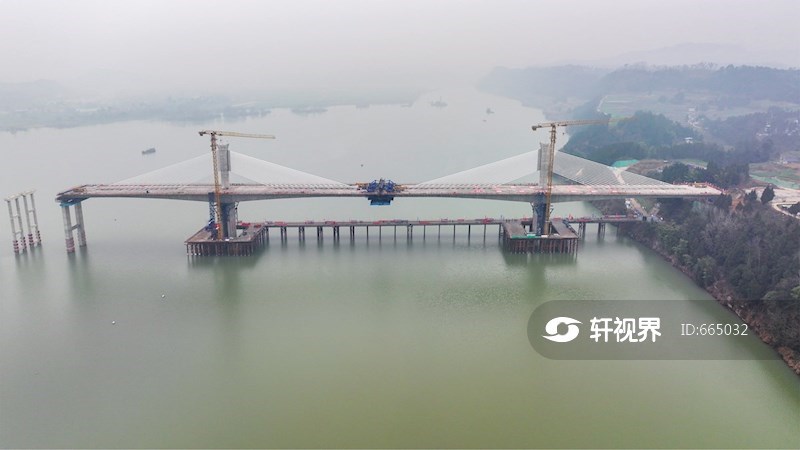 2026年1月18日,四川省阆中市,阆营高速嘉陵江特大桥主桥墩之间的桥面正在进行合龙施工。