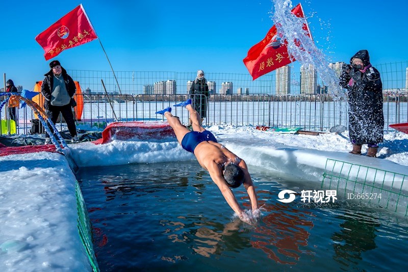 2026年1月24日腊月初六,黑龙江省大庆市滨州湖冬泳运动训练基地,冬泳爱好者不畏严寒,在零下26度极寒天气里,进行冬泳健身,引来众多市民围观。