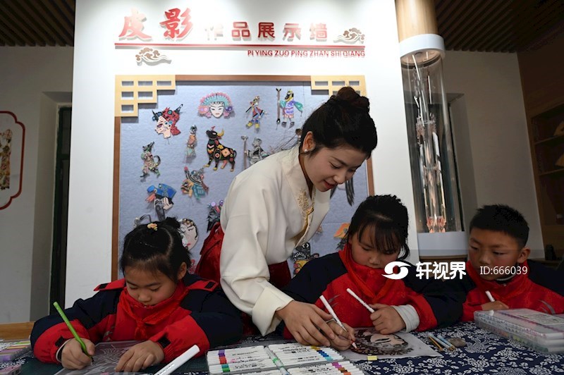 2026年1月14日,在四川省内江市东兴区外国语小学,老师在指导学生表演皮影戏。 近年来,四川省内江市东兴区外国语小学将落实“双减”政策与非遗文化传承相结合,组建皮影戏社团,每周定期开展皮影制作、皮影戏表演等培训课程,让学生们近距离接触皮影戏艺术,感受非遗文化魅力,丰富校园文化生活。