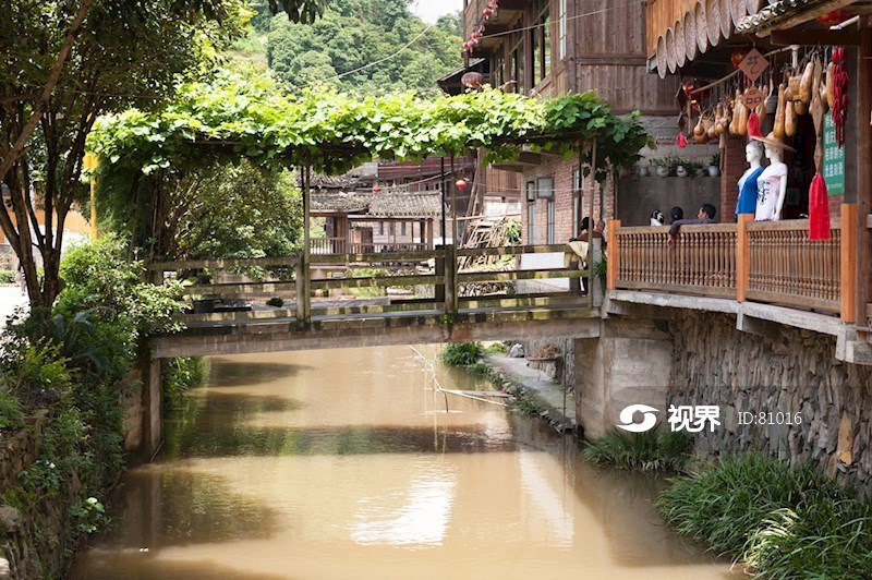 通道县黄土乡侗文化村由头寨、盘寨、尾寨、新寨共同组成。前三个寨子连为一体,新寨则是处于一个半岛上,由风雨桥(普修桥)和公路相通,与另三个寨子隔河相望。 1、民族建筑:侗族的民族建筑非常富有特色,一般分为居住建筑和公共建筑2类:居住建筑大部分为三层杉木结构的吊脚楼,公共建筑包括寨门、戏台、鼓楼、风雨桥、凉亭等。皇都侗寨具有特色的建筑具体如下: (1)寨门: 皇都侗寨现有三座寨门,分别为皇都侗寨寨门、盘